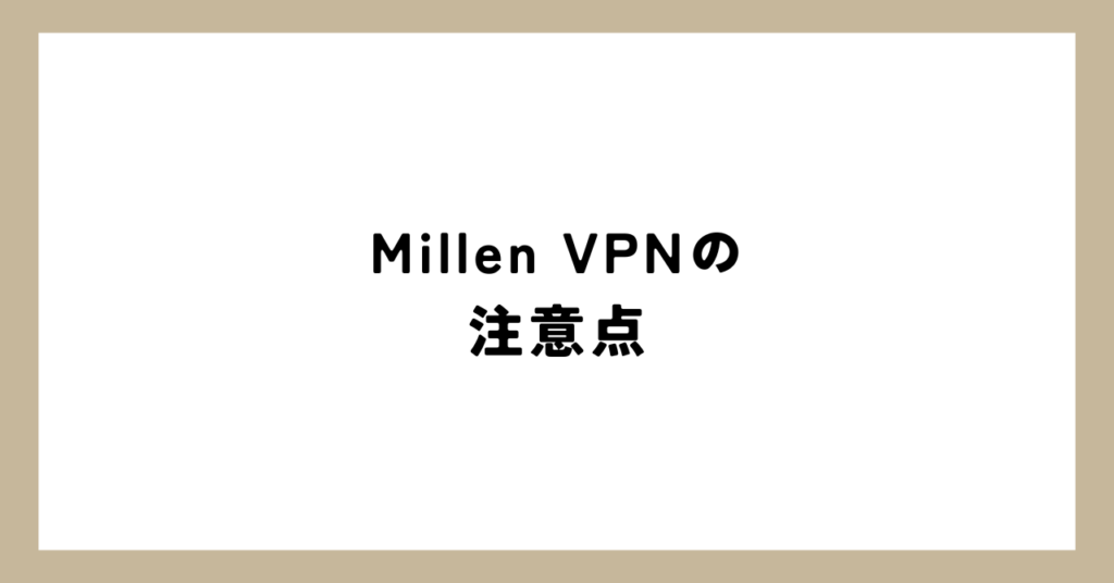 中国やロシアなど、厳しいネット規制がある国ではVPNがブロックされることがあります。状況によっては、Millen VPNも確実に利用できるとは限らないため、旅行前に最新の情報を確認しておくと安心です。