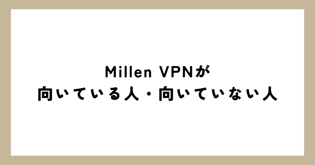| Millen VPNが向いている人 | Millen VPNが向いていない人 |