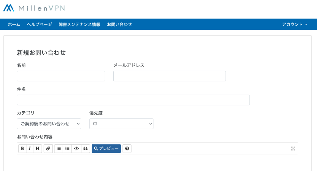 MillenVPNのサポートは日本語対応ですが、24時間体制ではありません。万が一トラブルが発生しても、すぐに対応してもらえない可能性があるため、事前に使い方を確認しておくことが重要です。