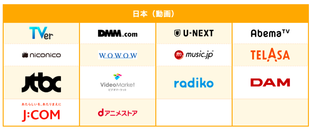 Netflix、Hulu、U-NEXT、ABEMAなど日本の動画サイトが見られる